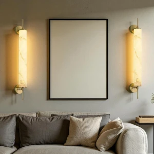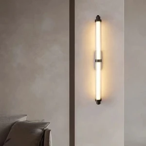 White Marble Finish Long Cylindrical LED Lamp Wall Light - Tricolour (3056)