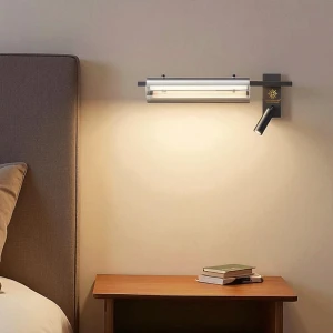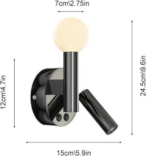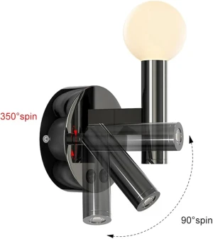 Black LED Wall Lamp with Adjustable Spot Light - Tricolour