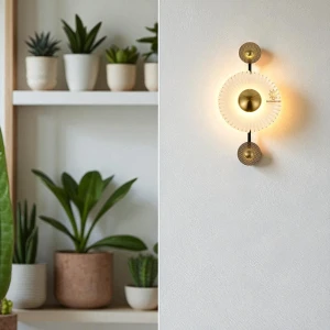White Golden Round Ceramic Plate with Metal Base Light Wall Lamp - Tricolour (2920)