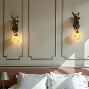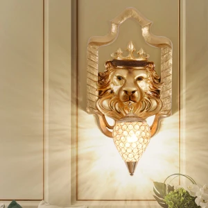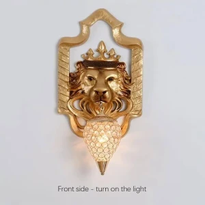 Royal 3D Lion Head Golden Statue Style Decoration Wall Lamp - Warm White