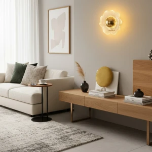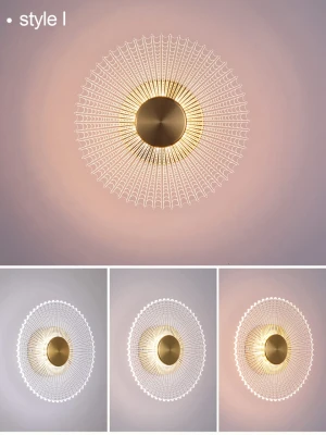 Golden Acrylic Light Round Flower Design Wall Lamp - Tricolour