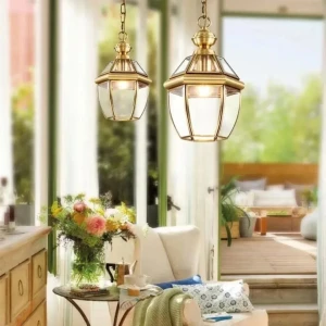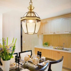 Round Gold Brass Finish Glass Pendant Hanging Light - Warm White