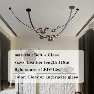Black Chandelier with Flexible Leather Belt Chandelier Light - Warm White
