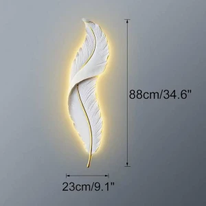 White Feather Leaf Shape Wall Light - Tricolour (White 900mm)