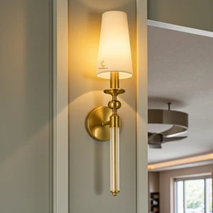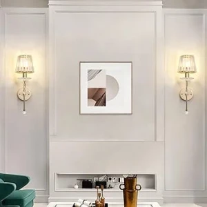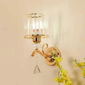 Gold Finish Light Crystal Lampshade Wall Lamp - Warm White