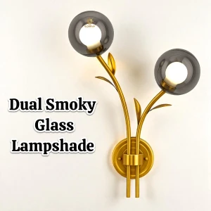 Creative Double Head Smoky Glass Golden Finish LED Light Wall Lamp - Warm White
