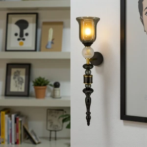 Creative Smoky Down Glass Black Finish Light Wall Lamp - Warm White