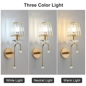 Gold Finish Light Crystal Glass Shade Wall Lamp - Warm White
