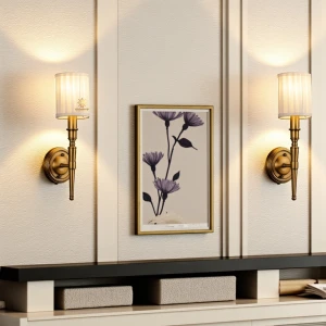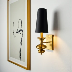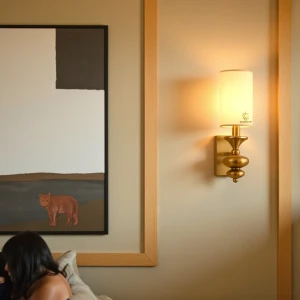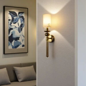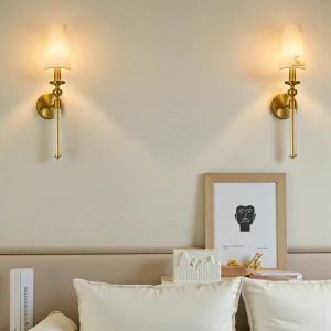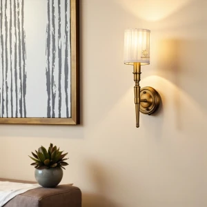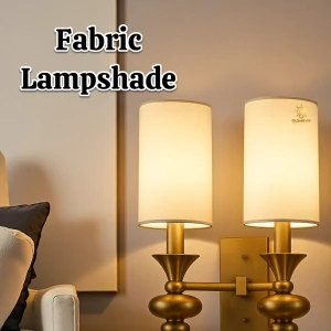 Antique Gold Finish Fabric Lampshade Wall Lamp - Warm White