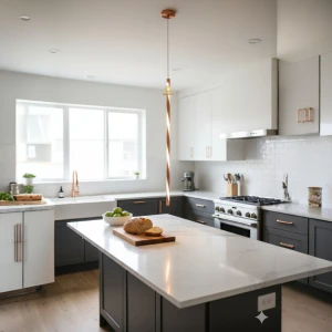 Long White Golden Profile Metal Pendant Hanging Light - Tricolour (White GD 7127)