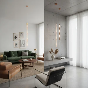 Long Profile Golden White Metal Pendant Hanging Light - Tricolour (GD White 7128)