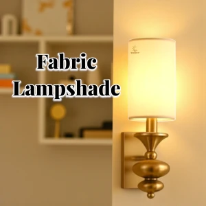 Gold Finish Metal Body Fabric Lampshade Wall Lamp - Warm White