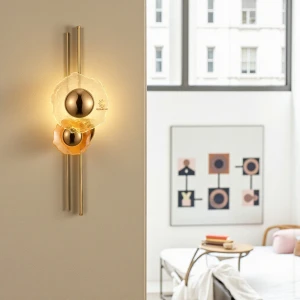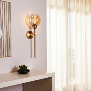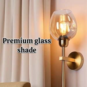 Clear Glass Golden Finish Light Wall Lamp - Warm White