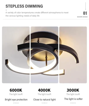 Black LED Twisted Curl Pendant Chandelier Light -Tricolour
