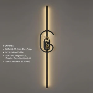 Royal Stag 600mm LED Golden Sleek Long Tube Deer Wall Light - Tricolour