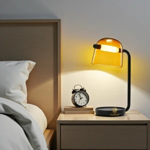 Amber Glass Shade Black Base Desk Lamp Table Lamp - Tricolour