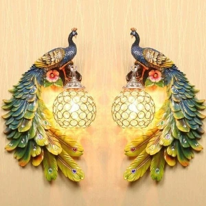 Clear Glass Ball Golden Body LED Wall Lamp - Tricolour