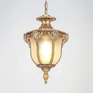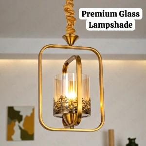 Gold Finish Metal Amber Glass Lantern Shape Pendant Lamp - Warm White