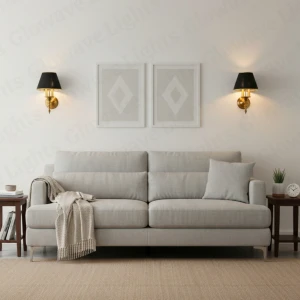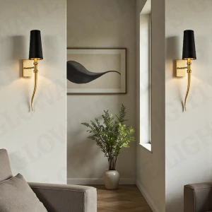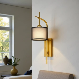 Antique Gold Finish Body Black Fabric Lampshade Wall Lamp - Warm White