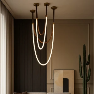 One Brown Linear Leather Belt Hanging Pendant Light - Tricolour