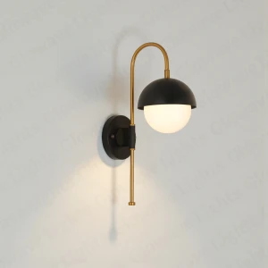Frosted Glass Ball Black Wall Lamp - Warm White
