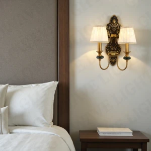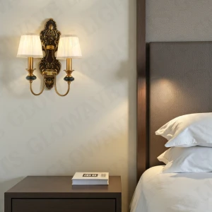 Antique Gold Finish Body Fabric Lampshade Vintage Wall Lamp - Warm White