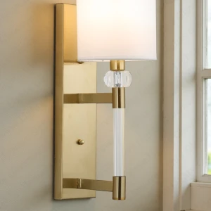 Antique Gold Finish Body with Crystal Fabric Lampshade Wall Lamp - Warm White
