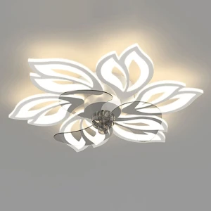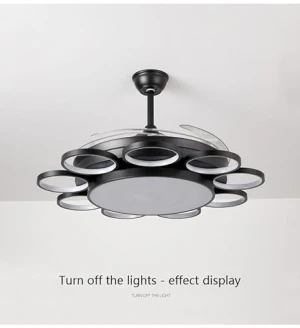 8 Leaves Flower Shape Chandelier Fan 42 Inch Black Retractable Blades - Tricolour