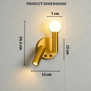 Golden Wall Spot Light Rocker Arm Adjustable Head with Switch - Tricolour