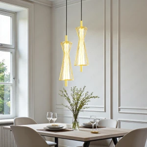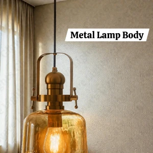 Vintage Metal Gold Brass Finish Amber Glass Pendant Hanging Lamp - Warm White