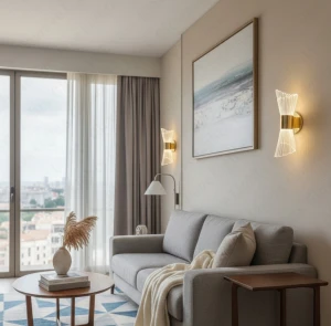 Creative Down Smoky Glass Golden Finish Light Champagne Wall Lamp - Warm White