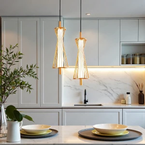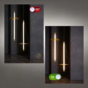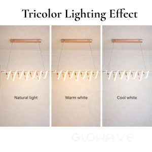 Linear LED Pendant Light with Golden Finish Hanging Chandelier Light - Tricolour