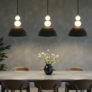 Dome Pendant Light with Opal Globe Matte Black & Gold Hanging Ceiling Lamp - Tricolor