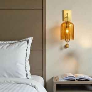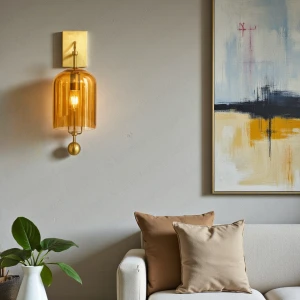 Creative Down Amber Glass Golden Finish Light Champagne Wall Lamp - Warm White