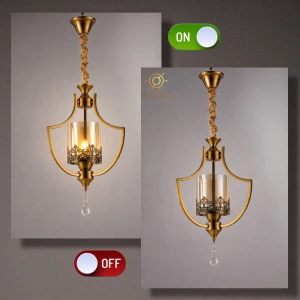 Stylish LED Gold Finish Metal Amber Glass Crystal Hanging Light - Tricolour Light