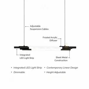 Linear LED Pendant Light with Black Finish Hanging Chandelier Light - Tricolour