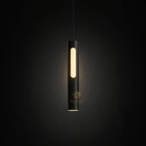 Cylindrical Pendant Light with Honeycomb Glow Matte Black Hanging Ceiling Lamp
