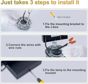 LED Ceiling Light Black Body Ceiling Fixture Lamp - Tricolour