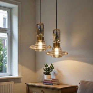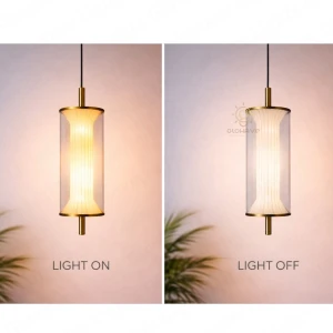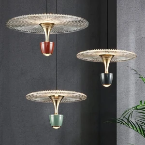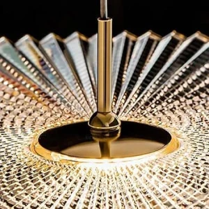 Gold Pendant Light with Ribbed Acrylic Shade Pendant Hanging Light - Tricolor