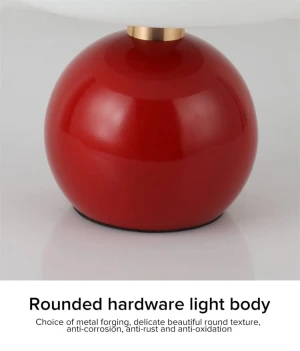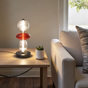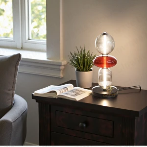 Glass Globe with Red Center Glass Black Base Desk Table Lamp - Warm White