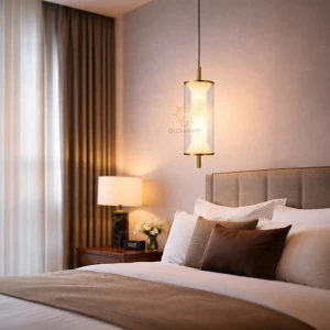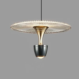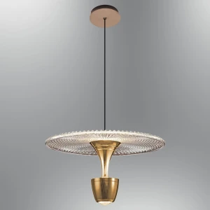 Golden Cylindrical Pendant with Acrylic Disc Hanging Light