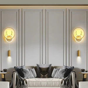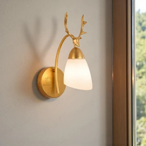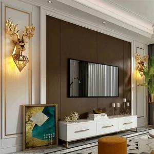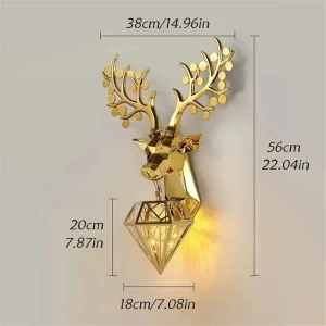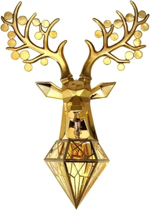 Royal 3D Deer Head Golden Statue Style Decoration Dual Purpose Wall Lamp - Warm White