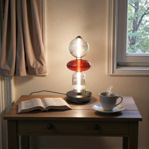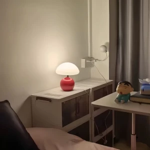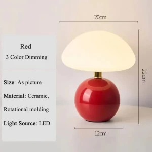 Cherry Red Body Glass Table Lamp with Mushroom Shade