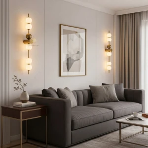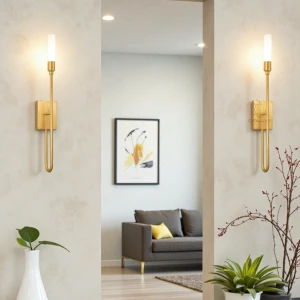 600mm LED Golden Round Base Long Tube Wall Lamp - Tricolour