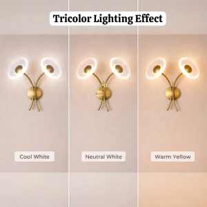 Golden Acrylic Flower Shape Wall Light - Tricolour
