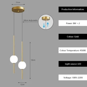 Sphere Pendant Light with Gold Frame Hanging Ceiling Lamp - Tricolour