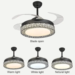 Black Finish Silent Operation Decorative LED Ceiling Fan - Tricolour