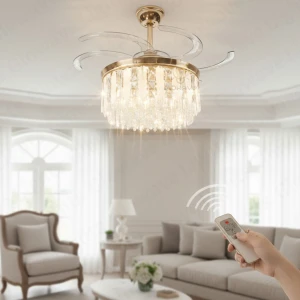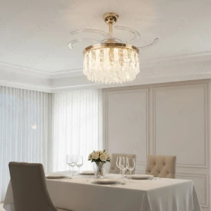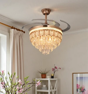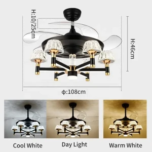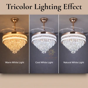 Luxury Crystal Retractable Ceiling Fan with LED Chandelier Light- Tricolor (FI 7641)