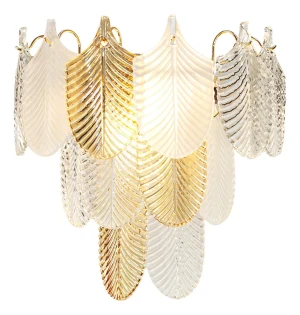 All Metal Golden Leaf Shape Plate with Center Crystal Wall Lamp - Warm White