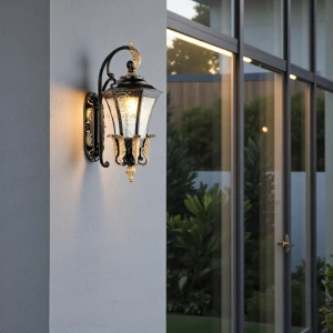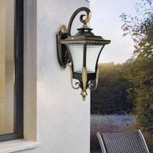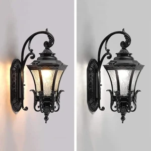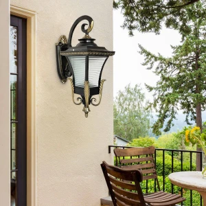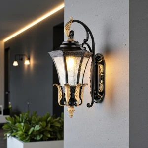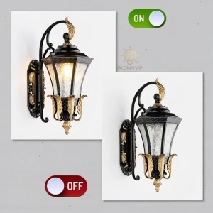 Vintage Black & Gold Finish Decorative Exterior Wall Sconce - Warm White